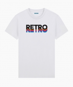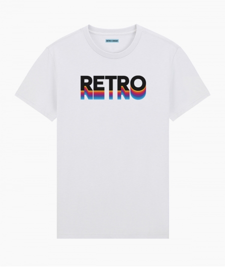 RETRO design with 80s-style typography and a vibrant multicolor effect.